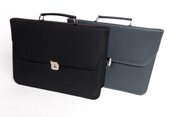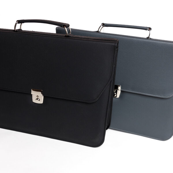 Cartable Professionnel en Simili Cuir avec compartiments – Noir et Gris