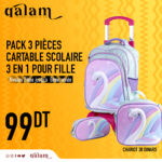 Pack 3 Pieces Cartable scolaire d’école primaire pour Fille 2ème jusqu’au 6ème